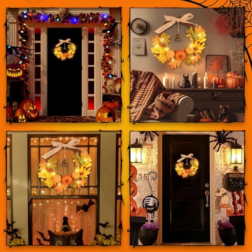 - WIDLY APPLICATION – This autumn wreaths for front door with hanger has both fall and halloween elements so it can be used as a autumn and halloween wreath decoration.Perfect for wall, front door, fireplace, window, backyard, living room, bedroom, kitchen, cafe, shopping mall etc. Suitable for indoor and outdoor use, domestic and commercial use. It is also a perfect warm gift decoration choice in Christmas, Thanksgiving Day, party, wedding, housewarming, festival celebration for family and friends!