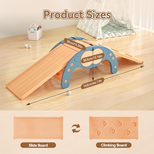 - 2-In-1 Reversible Ramp & Rocking Arch: The ramp of our climbing toy has two surfaces: one side has grooves for climbing and the other side has a smooth surface for sliding. The arches are also not only climbing arches but also double as swing toys. One product allows children to have multiple gaming experiences.