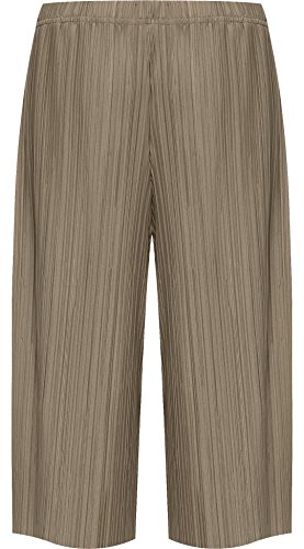 WearAll Women's Plus Pleated Elasticated Culottes Ladies Stretch Baggy Fit Shorts Pants – Mocha – 12-14