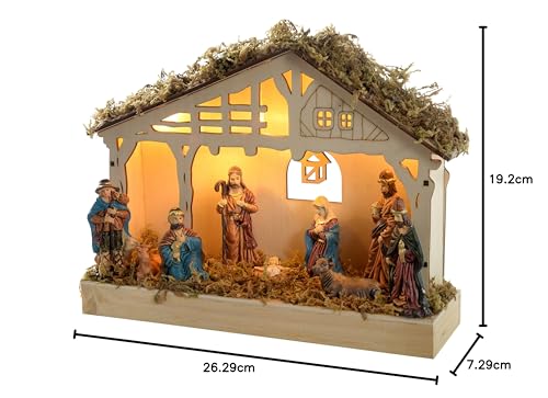 WeRChristmas Pre-Lit Christmas Wooden Nativity Scene Decoration Illuminated with 5-LED, 26 cm – White