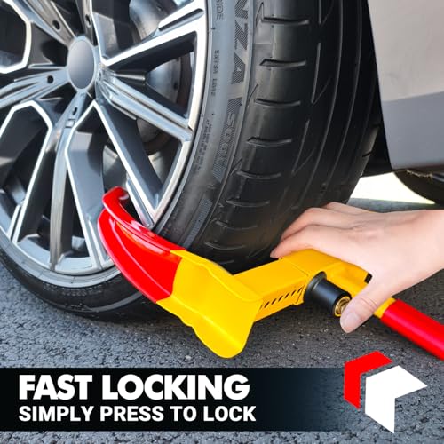 - HEAVY-DUTY SECURITY: Constructed from durable, high-quality steel, this wheel clamp provides strong protection against theft, cutting, and tampering.