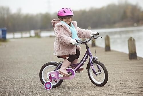 This 14 wheel wildtrak girl’s bike is designed for children aged 3 to 5 years old, 14 to 17 inch inside leg