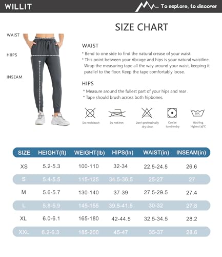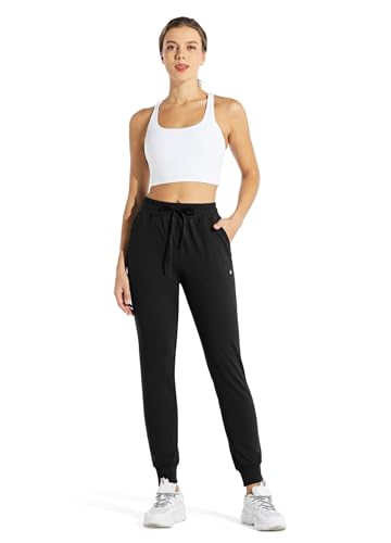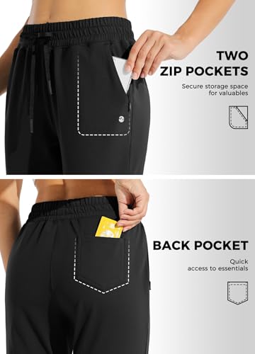 Willit Women's Fleece Lined Joggers Water Resistant Thermal Winter Trousers Warm Running Sweatpants with Pockets Black M