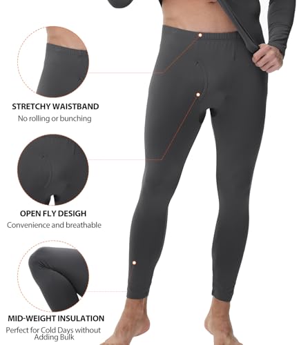 wirarpa Men's Thermal Underwear Set Fleece Lined Base Layer Long Sleeve Top & Bottom for Winter Warmth Dark Grey Size L