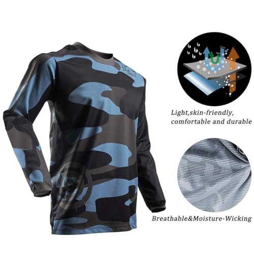 - SUITABLE FOR CYCLING This mountain bike top for men is suitable for cyclists of all levels, including road bike, mountain biker or motorcyclist. When you sweat, the jersey never sticks to your skin. It has a quick-drying function that makes you feel more comfortable. It can also be a moisture wicking tee that is ideal for all sports, training, workout, jogging, running, fitness, gym, camping, hiking, fishing, hunting. …