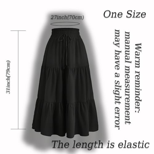 Women 2in 1,Elegant Maxi Skirt, Elastic High Waist Maxi Skirts for Women,Vintage Maxi,A Line Long Length Skirts with Drawsting,Summer Basic Casual Swing Midi Length Skirt Black