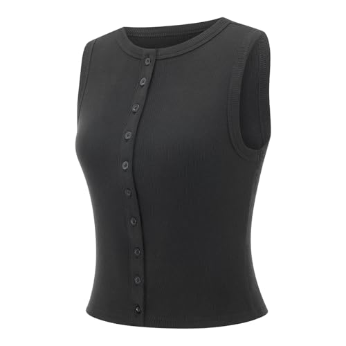 - FASHIOBLE DESIGN: Solid color, front button closure and round neck, sleeveless, split hem, slim fit, crop length, casual tank tops for women, summer tops for women, crop tops for women, simple and casual style that never goes out of style