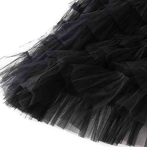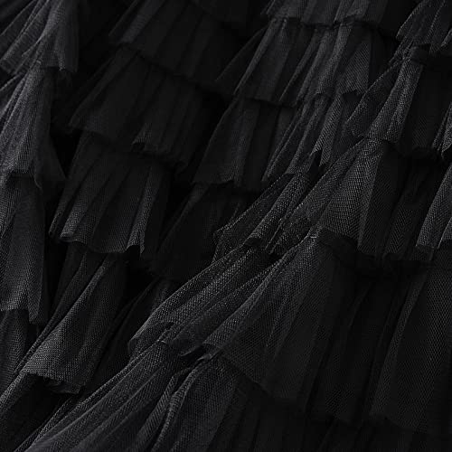 LYSINK Women Multilayer Ruffles Tulle Tutu Skirt Pleated Elastic Waist Flared A Line Skirt Fairy Cake Long Skirt (A-Black, ONE Size)