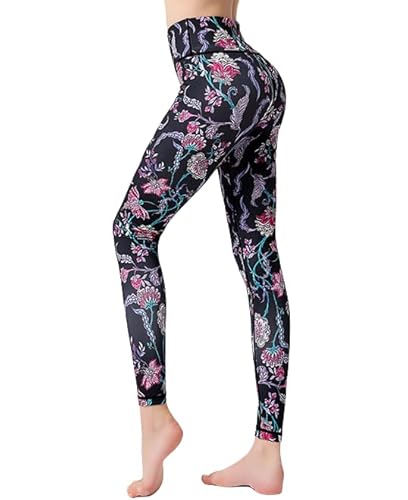 Women Yoga Pants High Waist Printed Compression Workout Leggings Tummy Control Activewear for Fitness Running Training Gym, Black01, X-Large