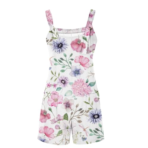 Women's Casual Summer Cotton Linen Rompers Overalls Jumpsuit Shorts Adjustable Straps Romper Summer Casual Loose Overalls Cool Sleeveless Jumpsuits with Pockets XXL