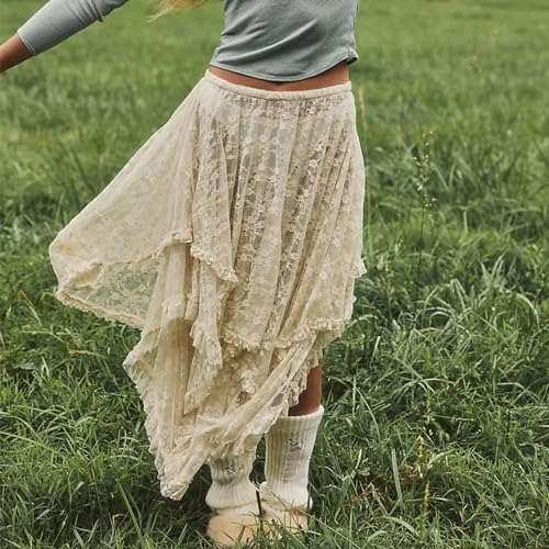 - Features: Women's floral lace maxi skirt features elastic waist, frill and ruffle detail, irregular layered hem, maxi skirt with built-in shorts, sexy semi-transparent, lace print pair with a fluffy and layered hem to this cute skirt brings a sexy and romantic vibe.Romantic and elegant lace long skirt.