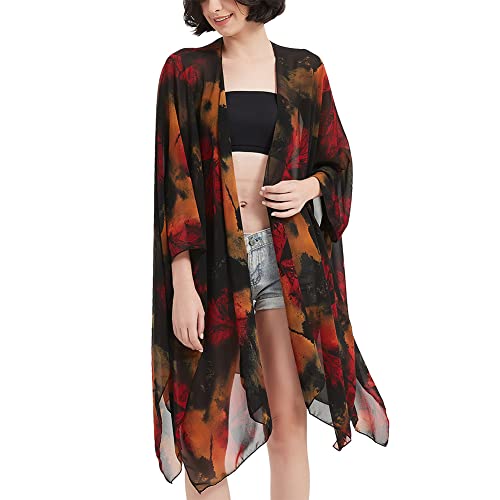 Women's Kimono Cardigan Long Chiffon Floral Swimsuit Cover up Bohemian Beachwear Bikini Shawl Tops