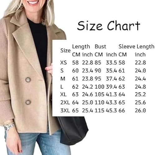 Lockenstab Women's Lapel Button Knitted Patchwork Sleeve Casual Coat, Trendy Double Breasted Pea Coats With Pockets, Winter Blazer Loose Jackets Tops(Khaki,M)