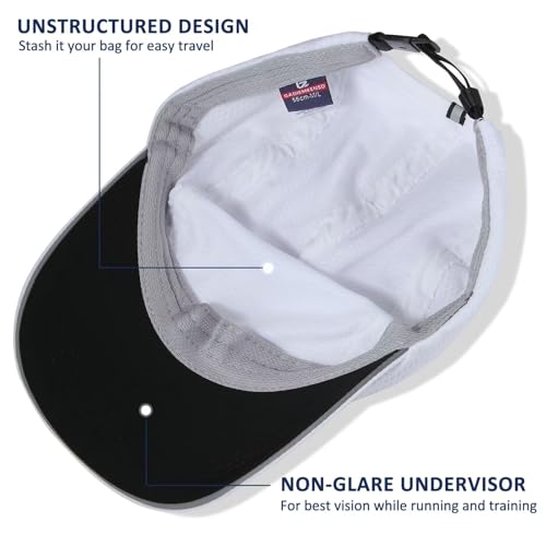 Women's Race Day Running Hat Performance Mesh Baseball Cap Excellent Ventilation Lightweight Reflective Safety Ponytail Hats 2 Packs for Gym Exercise Golf Hiking Beach Workout (Black, White)