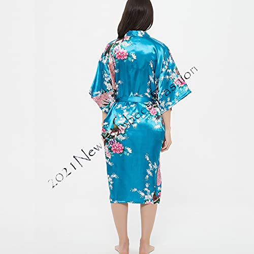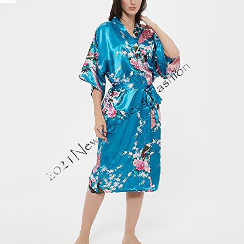 - Women's Satin Rose Print Kimono Robe Premium Peacock Bridesmaid Bridal Dressing Gown Sleepwear Nightwear