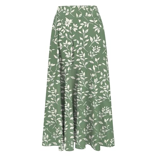 Women's Skirts Elasticated Waist Floral Print Maxi Skirts Plain Lightweight Summer Ladies Summer Beach Swing Long A Line Skirt for Holiday Vacation