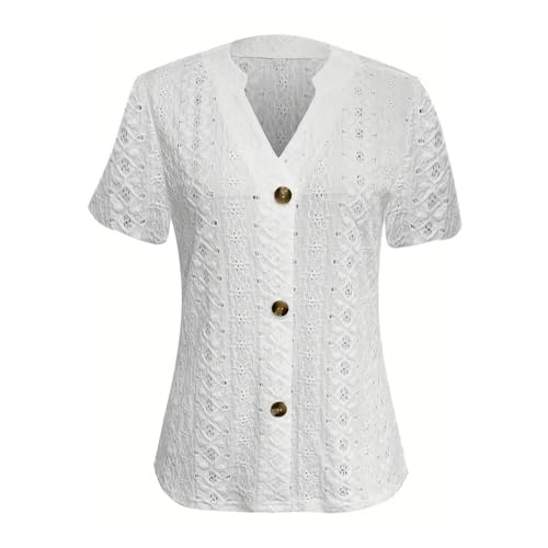 Womens Summer Tops Babydoll Short Sleeve Shirts Button V Neck T Shirts Hollow Out Eyelet Tunic Blouses Dressy Casual Blouses Trendy Loose Fit Tees Shirt Going Out Tops