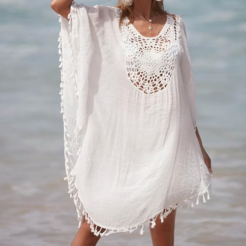 - 💗 Feature:V-neck, Short Sleeve, Half see through, Hollow out, elegant handmade crochet fringe craft, solid color, loose fit beach Cover Ups.The beach coverups can be paired with the bikini,sun hat,swimsuit,flip flops,or sandals. It's suitable for the beach, pool, cruise, or any summer occasion.