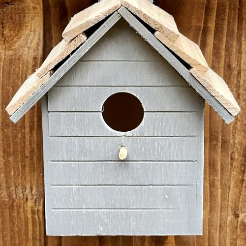 Wooden Bird House 21.5cm Grey Wall Mounted Garden Fence Small Wild Birds Nesting Box