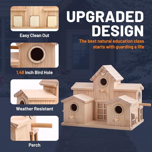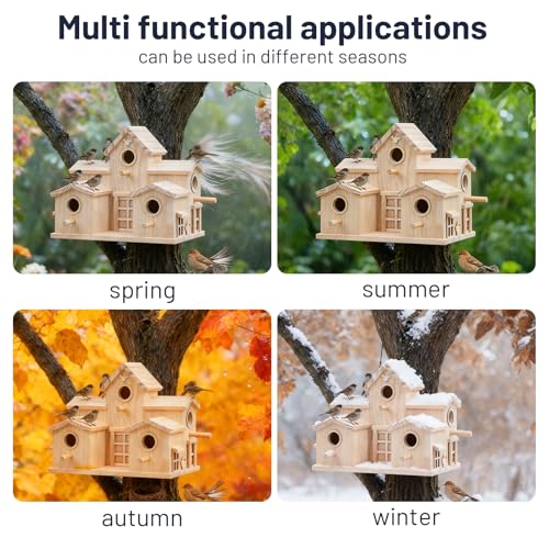 - MULTI-ENTRY DESIGN: Features multiple circular entry holes and perches, providing easy access for various small bird species to nest and rest