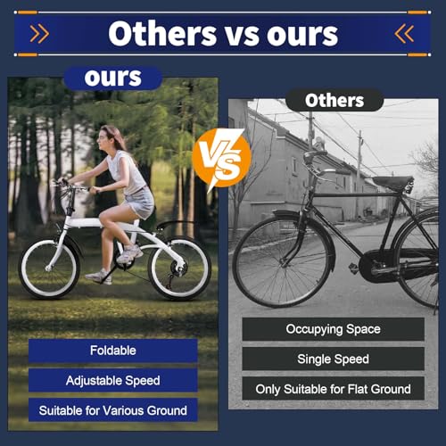 - š²ćFoldable DesignćThis bike can be folded, you can store and carry it easily. The size of the bike is particularly small when folded, so you can easily put it in the trunk and enjoy the ride anytime, anywhere.