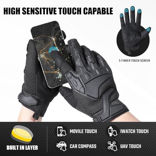 WTACTFUL Flexible Breathable Airsoft Gloves Mens Touch Screen Full Finger Gloves for Cycling Motorbike Riding Driving Racing Climbing Camping Hiking Black S