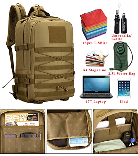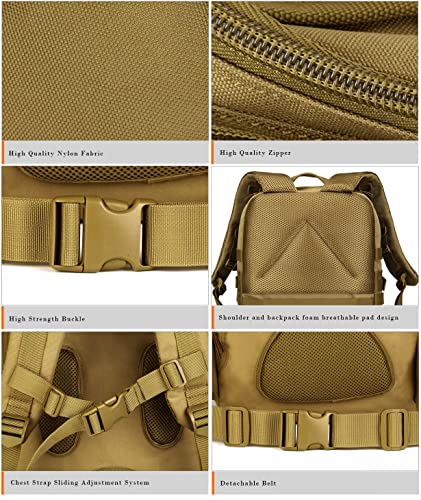 Oreunik 45L Military Tactical Backpack,Molle Army Rucksack Large Tool Backpack for Work Hiking Trekking Camping Hunting Fishing (Khaki)