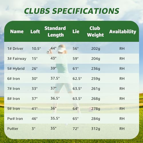 - Convenient Hybrid & Irons: With low-profile design, the high elasticity hybrid can provide more speed to add distance. Besides, the irons with zinc alloy heads have deep grooves that increase friction for better control and spin. By the way, the hybrid is a great alternative for irons