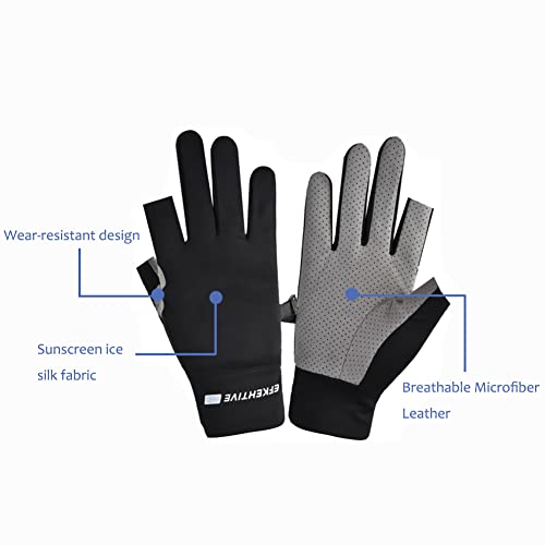 XGOPTS Summer Sun Protection Cycling Gloves Touchscreen for Men Fishing Gloves for Boating Surfing Hiking 2 Finger Cut Breathable Non-Slip Driving Gloves