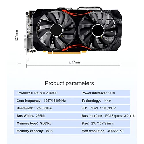 - XIDIT Graphics Card RX580 8G 2048SP Gaming Graphics Card GDDR5 256Bit Radeon GPU PCI- 3.0 X16 Desktop Video Card