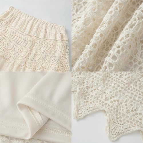 Yassiglia Women's Summer A-line Long Skirt Boho Crochet Flowy Maxi Skirt for Beach Gypsy Skirt Summer Skirts for Women UK (Beige, ONE Size)