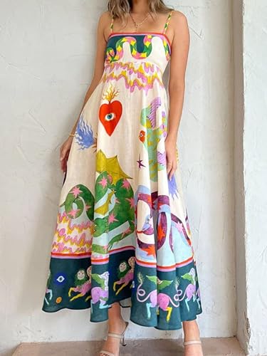 - Design: Ethnic snake print, adjustable spaghetti strap, sleeveless, sqaure neck, long maxi beach dress, high waist, flowy hem, summer cami dresses for women, sexy backless long maxi dress, party clubwear, multicolor patchwork dress, ruffle a-line maxi dress.