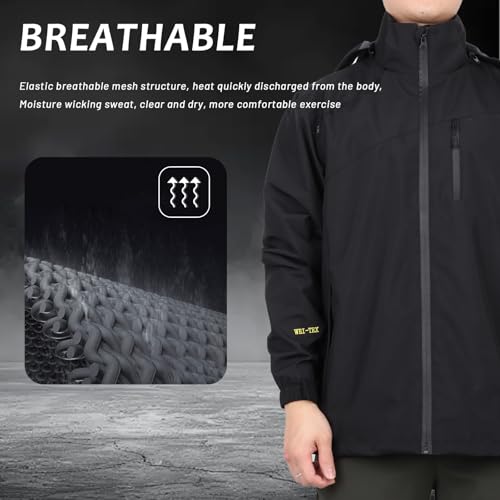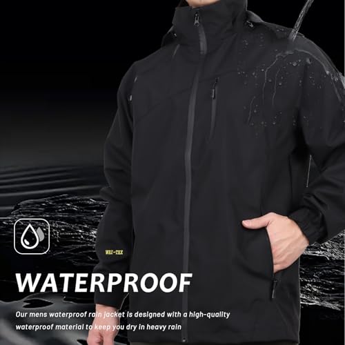 - Waterproof and Breathable: Our mens waterproof rain jacket is designed with a high-quality waterproof material to keep you dry in heavy rain, while also allowing air circulation to keep you comfortable.