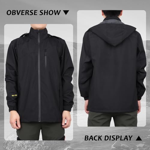 Ynport Crefreak Mens Outdoor Waterproof Rain Jacket Breathable Lined Hiking Rain Coat Windproof Rainsuit with Detachable Hood and Zipper Pocket, Black, M