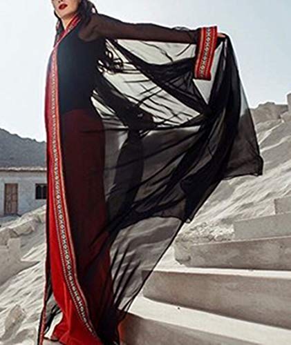 YouKD Summer Embroidered Floral Long Cardigan Bohemian Kimono Beach Swimsuit Cover Up Plus Size Dress for Women A Black