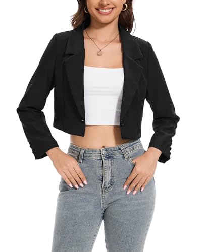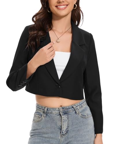 YOUNIFIZ Women's Cropped Blazer Jacket 2025 Spring Summer Blazer Jackets Long Sleeve Lightweight Lapel Button Office Work Suit Jacket Black