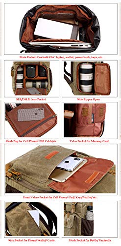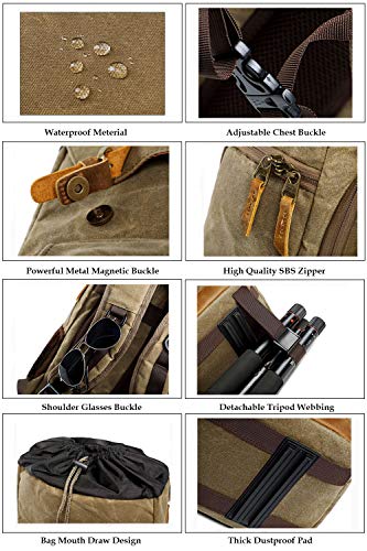 YUHAN Camera Bag, Canvas SLR DSLR Camera Backpack Large Capacity Front Open Waterproof Anti-shock Camera Rucksack Camera Travel Bag Professional Camera Lens Organizer Khaki
