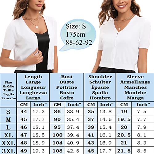 Yukiuiny Women's Elegant Knit Cardigan Cropped Short Sleeve Shrugs for Spring Summer Autumn, Coat Mini Jacket Bolero for Weddings Party-Short Sleeve-White/L
