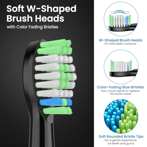 - Get More for Your Money – Included in the package are 8 toothbrush heads with a unique W-shape, which fits the contours of teeth better for comprehensive cleaning. The soft nylon bristles are gentle on gums yet effective at cleaning, and the blue bristles feature color fading function to remind you when it’s time to change the brush head. Plus, a convenient travel case is provided for easy storage on the go.