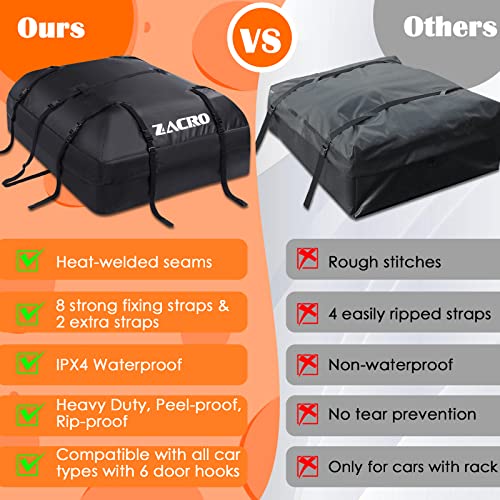 Zacro Car Roof Bag – 15 Cubic Feet (425 L) Waterproof Box – Straps for Any Vehicle With/Without Rack/Rails/Bars – Foldable Top Carrier With 10 Reinforced Straps and 6 Door Hooks