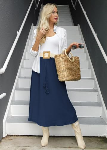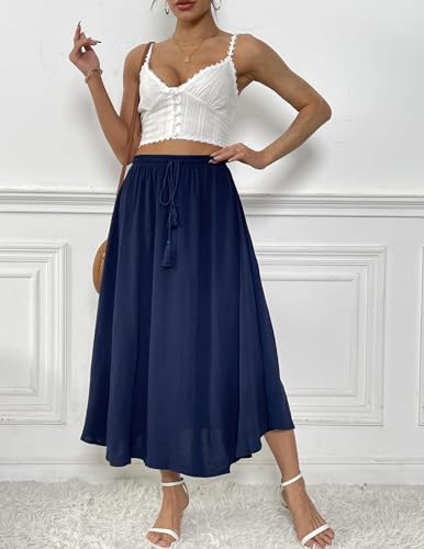Zeagoo Women's Maxi Skirts Elegant High Waist Skirt Summer Basic Skirt Casual Elasticated A Line Skirts for Women Navy Blue M(M=10)