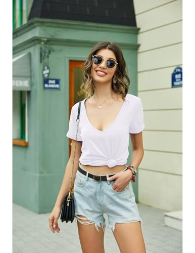 - 【Design】Deep V-neck Tshirt perfectly shows your body curves, and the comfortable cut makes you feel relaxed on hot summer days. This top has a loose hem, you can tie it up to show off your lovely waist.