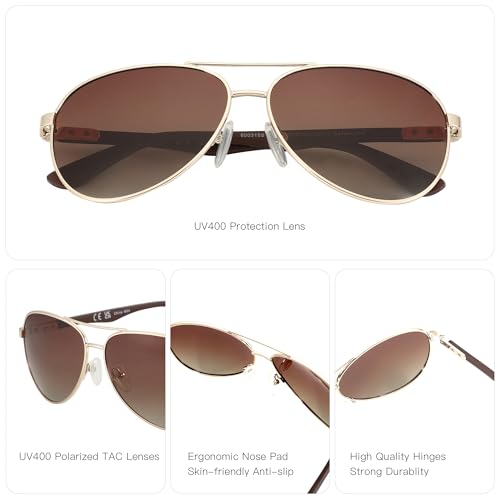- 【High Quality Sunglasses】The pilot sunglasses womens & mens have a metal frame with rubber sleeves at the end of the metal temples to make them more comfortable to wear . The non-slip nose pads and soft nose pads can adapt to different nose shapes. The rubber-filled temples fit snugly around the face and won't come off during outdoor activities, reducing pressure on the nose and ears.