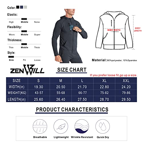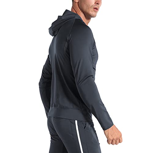 ZENWILL Mens Stretch Sport Hoodies, Lightweight Muscle Fit Gym Hoodies Zip Up Pockets