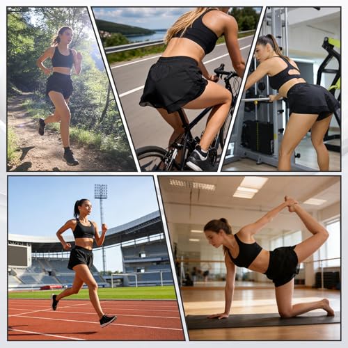 ZHAOCAI 2 in 1 Womens Running Shorts,Athletic Women's Short with Liner and Pockets,Black Quick Dry Lightweight,Women Gym Clothes UK (UK, Alpha, L, Regular, Regular)