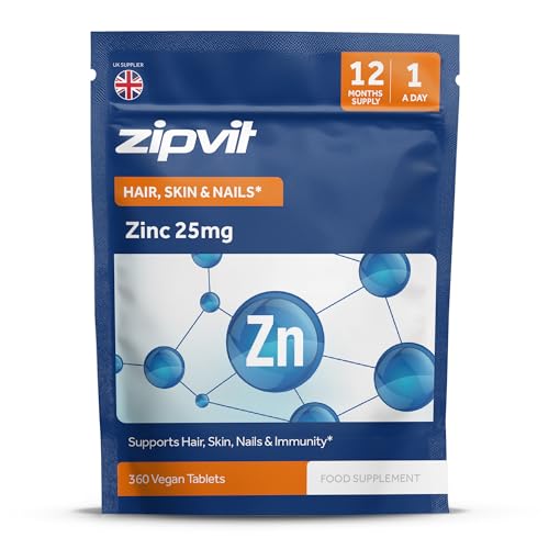 Zipvit Zinc 25mg, 12 Months Supply, Recommended Dose Zinc Supplement, Supports Hair, Skin, Nails, Bones & Vision, Promotes Immunity, Fertility & Reproduction for Men & Women, 360 Vegan Tablets