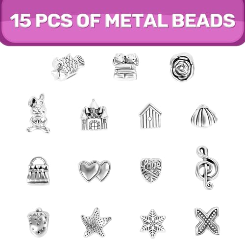 - Inspire Your Unique Creations- ZOOI bracelet making kit help you inspire your creations. Gift box include (2 Adjustable bracelets, 2 straight-beaded bracelets, 16 beads with dangle charms, 3 necklaces, 16 metal beads for bracelet making kit for girls, 24 crystal beads which makes it a great gift item for girls who like DIY accessories.