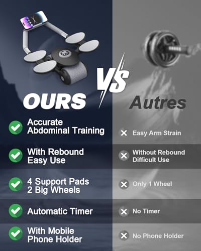 - Smart Design with Timer & Phone Stand: Stay engaged while working out with the integrated phone stand and track your sessions using the built-in timer. The included knee pad ensures extra comfort and protection, making this ab wheel roller an excellent addition to your abdominal exercise equipment