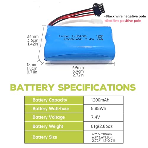 - This 7.4V battery with a 1200mah capacity is designed with a SM-4P plug for easy charging, and comes with a USB charging cable for added convenience. It is compatible with EC08 RC toy car, model off-road car, climbing drift racing and RC boat.