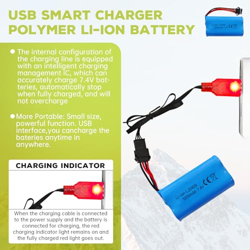 ZYGY 2PCS 7.4V 1200mAh SM-4P Plug Rechargeable Battery with USB Charging Cable for EC08 RC Toy Car Model Off-Road Car Climbing Drifting Racing RC Boat Battery